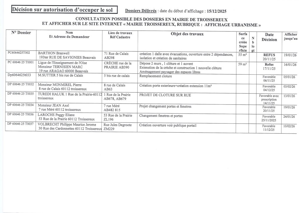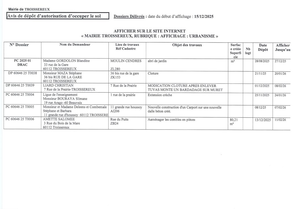 Avis de dépôt et décision d’autorisation d’occuper les sols