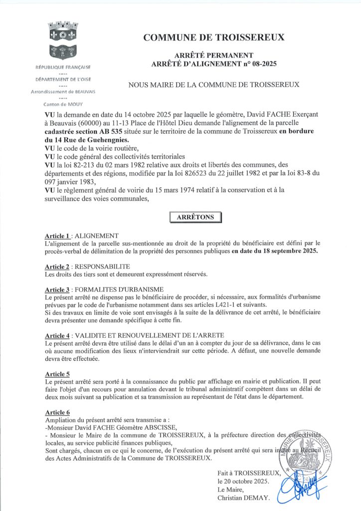 Arrêté alignement AB 535 permanent n° 08-2025