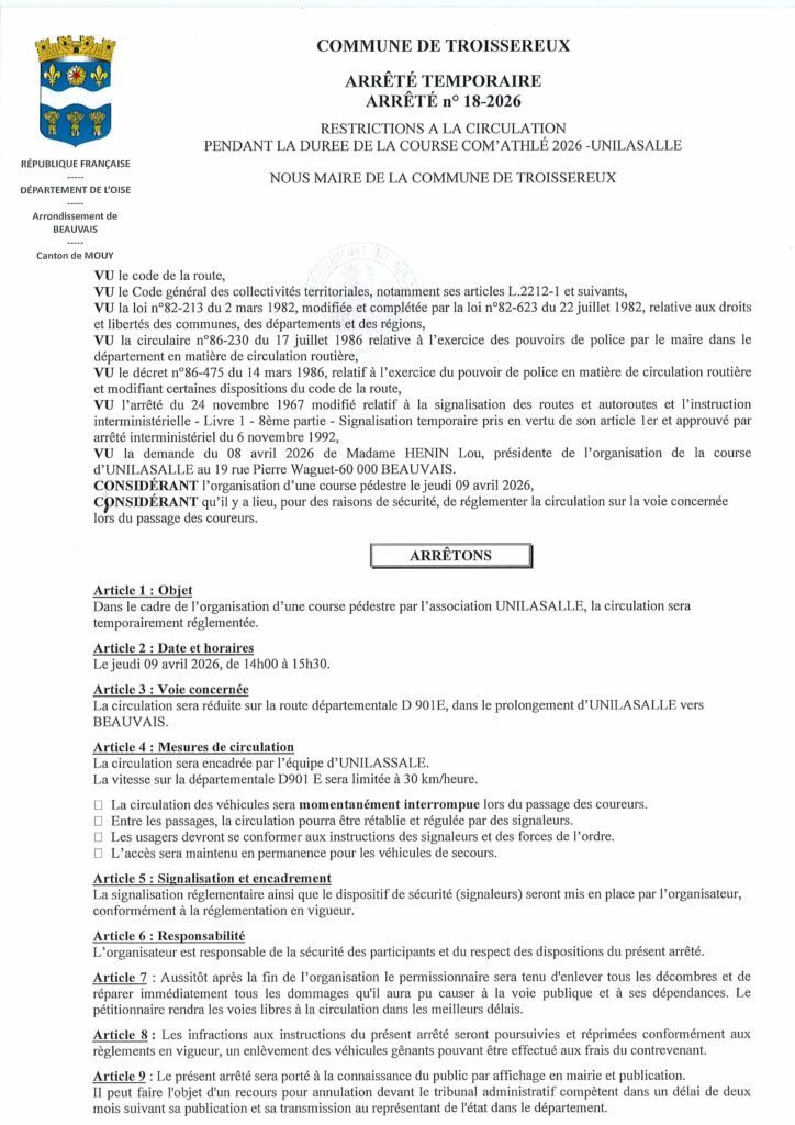 Arrêté n°18-2026 Course d’Unilassale